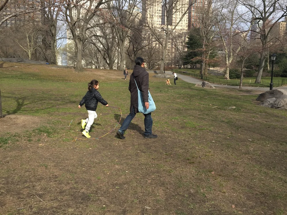 Easter week was the first time our family traveled to the United States since moving to Germany last March, and we were very excited to go home to America to see family and friends. Mario absolutely loved New York City, and though he was enchanted by the lights of Time Square, delighted by his friends in Brooklyn and New Jersey, and thrilled to shop downtown (at the Lego store of course - the shopaholic in me is non-the-less very proud), Mario's favorite place in New York was Central Park. He brought his stick ropes (cat toys) with him and ran through the park for hours on end twirling them in the wind. Mario has become a bit of a nature boy in Germany and loves being around trees and greenery - Central Park was naturally a wonderful and magical place for him to explore.