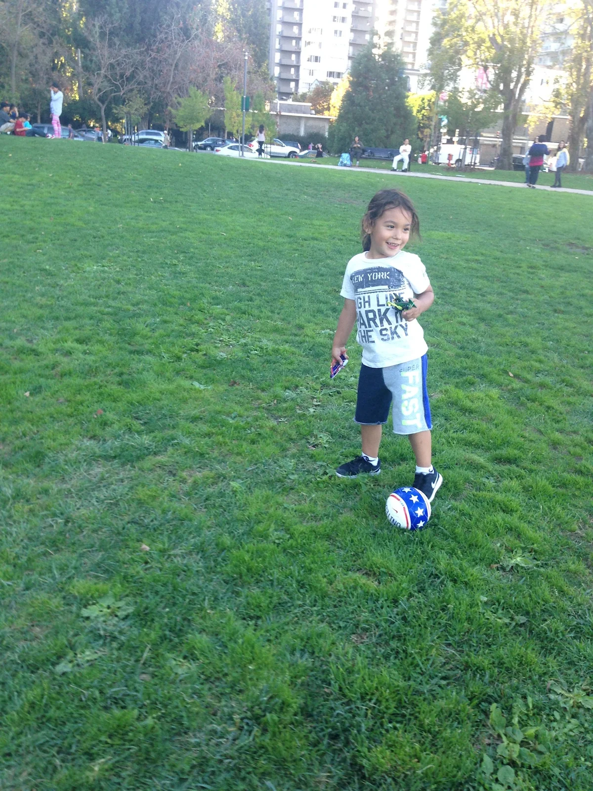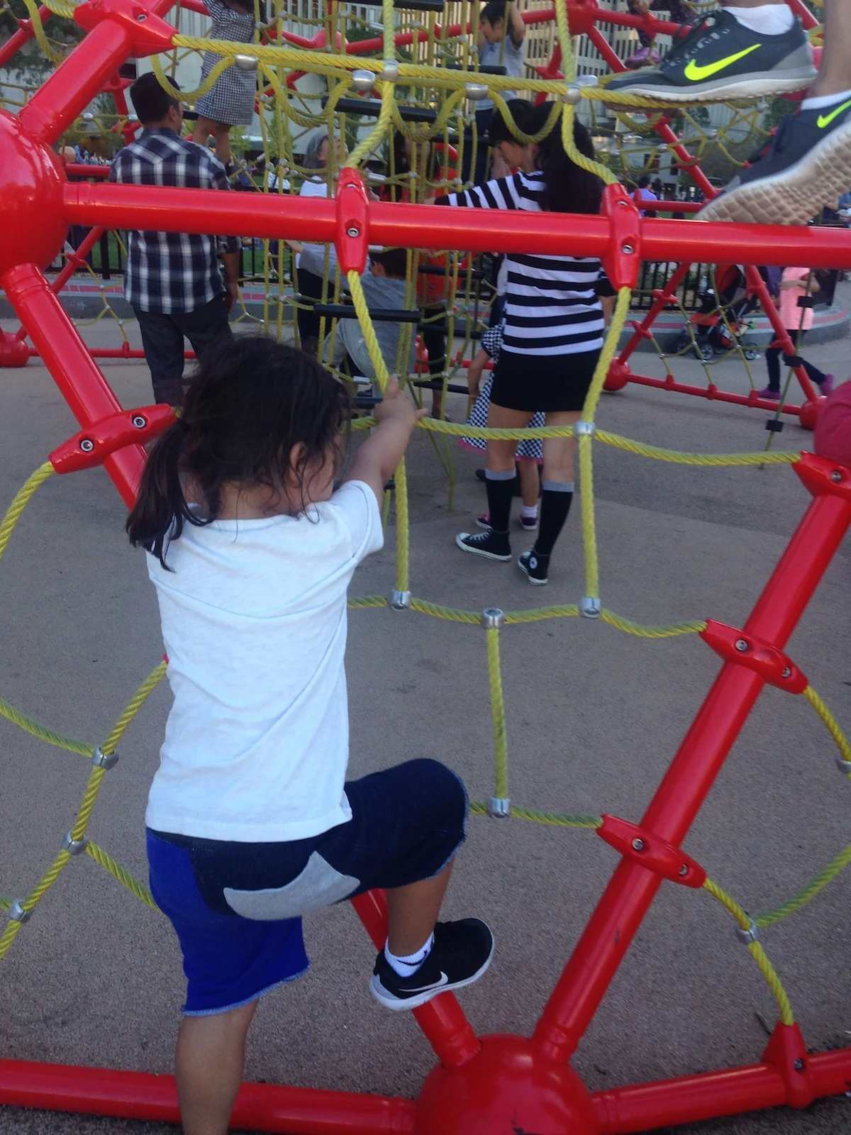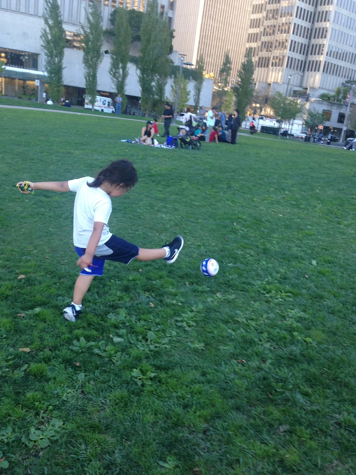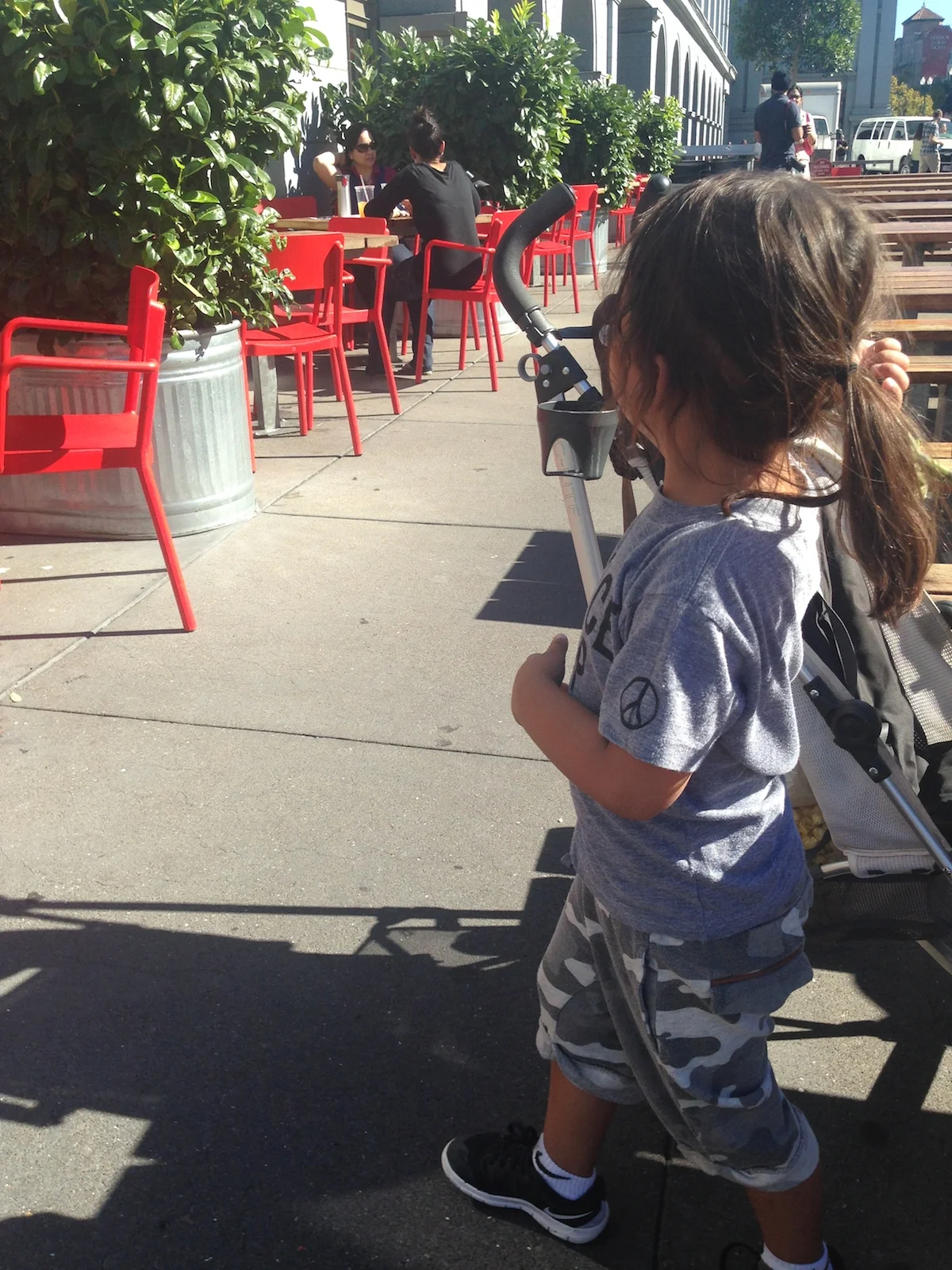 We decided to grab bacon cheeseburgers, fries, and ice cream at Gott’s Roadside, eating at an outdoor picnic table while watching the first part of the Air Show. Afterward, we headed to the Playground at Sue Bierman Park, where Mario and Dada watched the United States Navy Blue Angels from the top of a jungle gym. If you were to ask both my boys, they’d say it was the best seat in the city for the Air Show. Mario and Dada ended the day by kicking a soccer ball around.