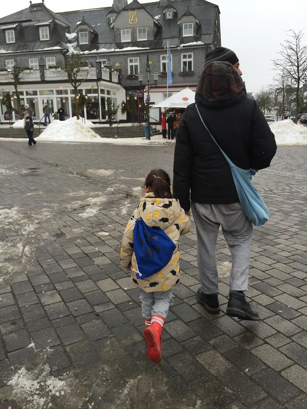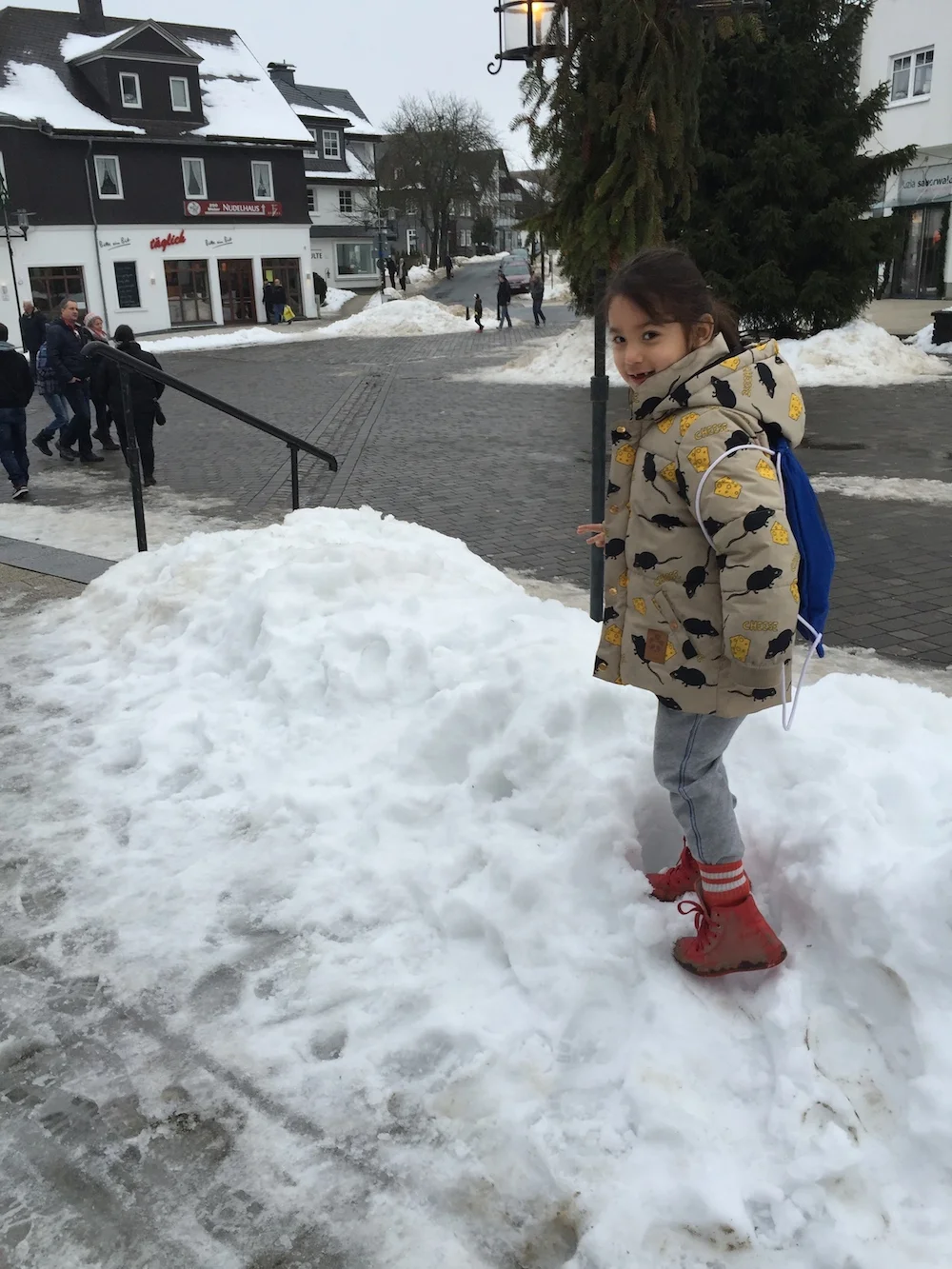 Mario spent the first four years of his life living in sunny San Francisco, so experiencing winter in Germany has been an exciting experience for him. A few weekends ago we drove 2 hours into the country to a ski town called Winterberg; the name of the village is very fitting as it has several ski resorts and many winter activity spots to enjoy. Mario got a sled, but what he was most excited to do was to build a snowman. We brought baby carrots with us for the snowman's nose and we went on a search for chestnuts for the eyes, birdseed for the mouth and twigs for the arms. Lastly, we topped off the snowman with my hat and Mario excitedly named him "Snowflake". However, Mario quickly became cold and abruptly was done playing in the snow, but not before he imagined "Snowflake" waking up at night to dance under the stars. Mario still speaks of "Snowflake" often and truly seemed to have loved playing in the snow, almost as much as we love enjoying new experiences with his excitement and awe!