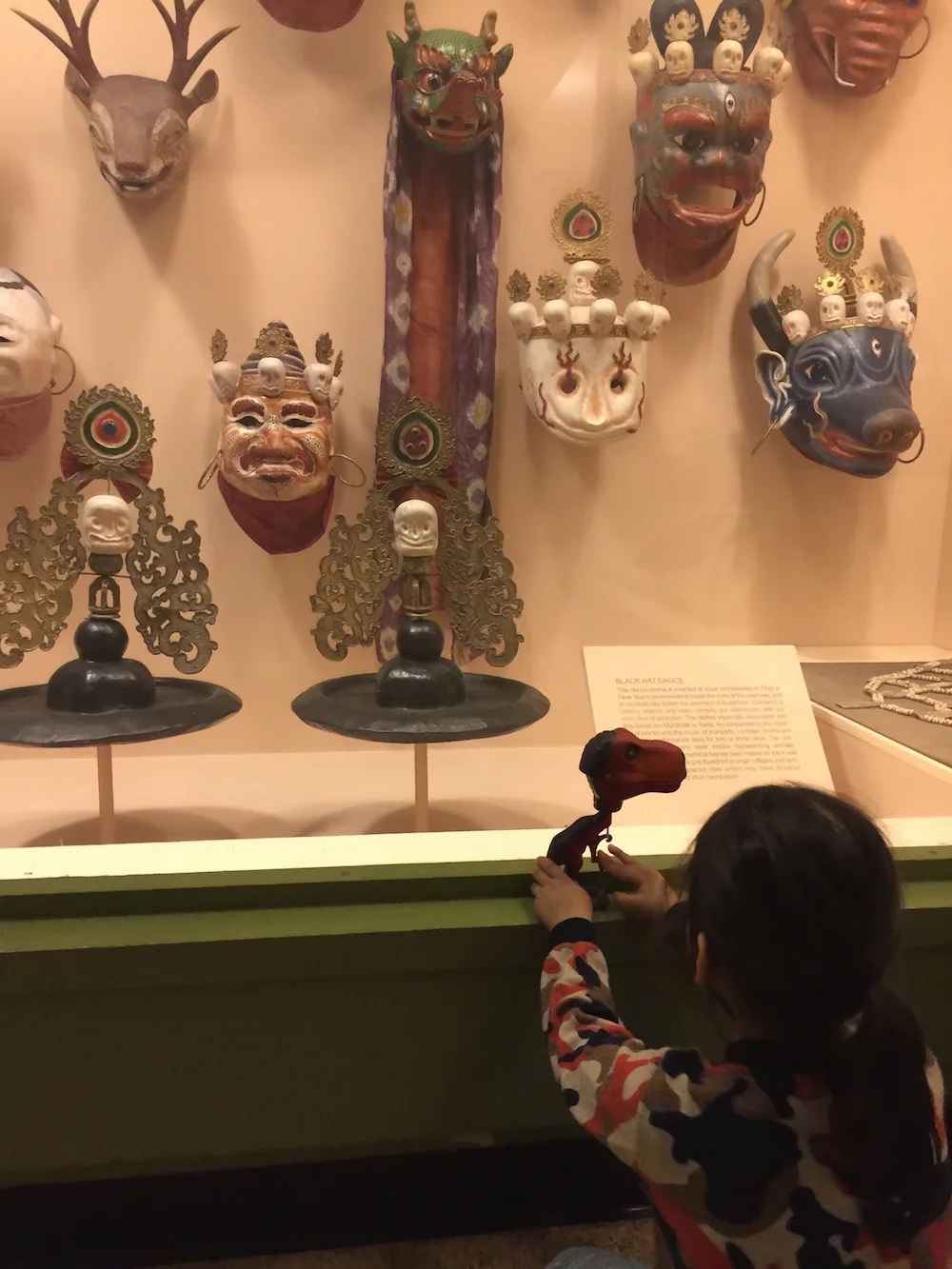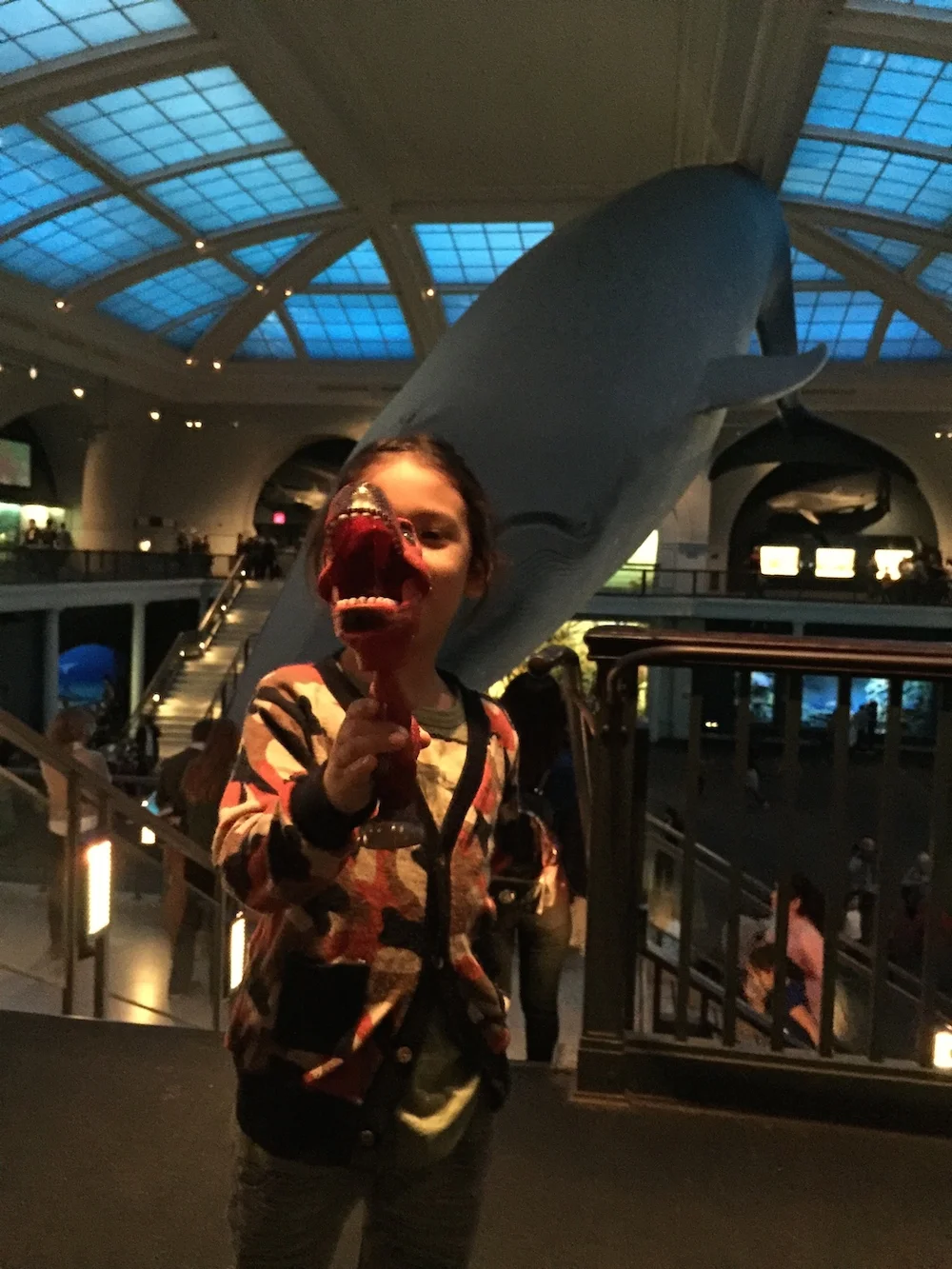Once inside the Museum, we not only discovered Dinosaurs but also explored the Earth and Planetary Sciences halls showcasing meteorites, minerals, and rare gems; the Mammal halls with anatomically correct specimens located in depictions of their natural geographical locations; the Milstein Family Hall of Ocean Life with a 94 foot long Giant Blue Whale model; the Hall of Biodiversity showcasing the beauty and abundance of life on Earth; the Birds and Reptiles and Amphibians Halls portraying the wide variety of avian life on the planet; the Hall of Human Origins with the cultures of Asia, Africa, North and South America, and the Pacific; and lastly, but certainly most exciting for a 5-year old, the Hall of Ornithischian Dinosaurs featuring fossils from dinosaurs!